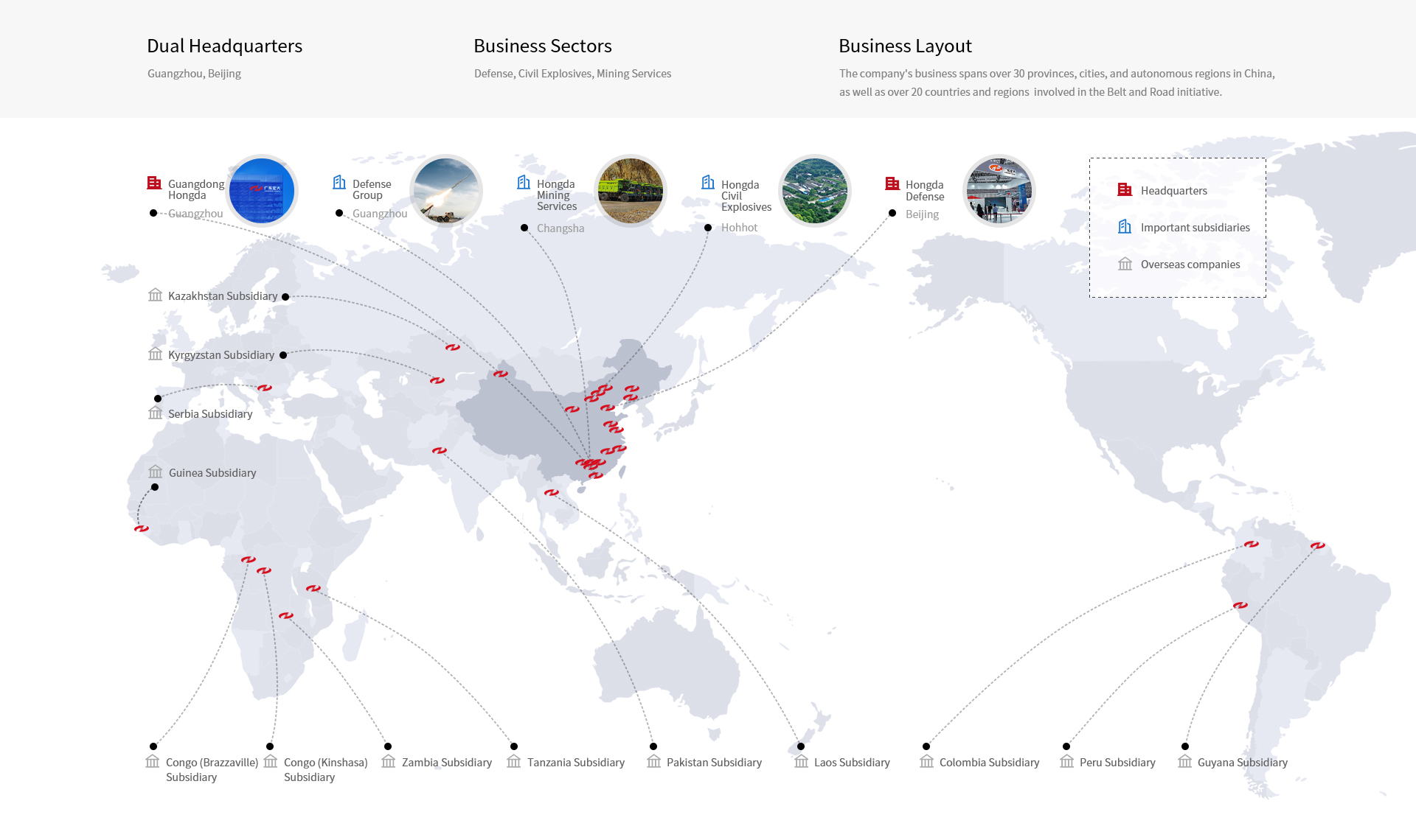Guangdong Hongda Holding Group Co., Ltd., established in 1988, is a subsidiary of Guangdong Environmental Protection Group Co., Ltd., which is under the supervision of the State-owned Assets Supervision and Administration Commission of Guangdong Province. It is the first listed company in China providing integrated mining and civil explosive services.