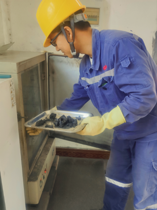 我在耀世娱乐罗化民爆中心理化室,正在检测入厂原质料复合油相含水量,为产品质量把关。